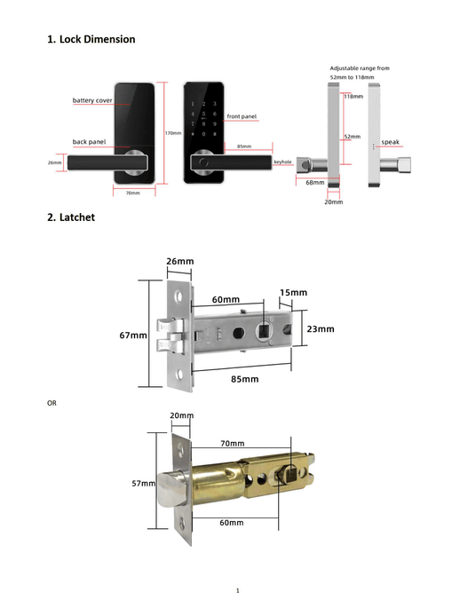- Kilit Açma Yöntemleri: Bluetooth Uygulaması, WiFi Uygulaması, Parmak İzi Kilidi, Şifre, Kart, Mekanik Anahtar